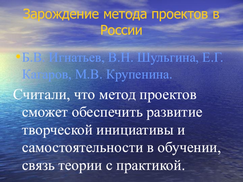 Считали, что метод проектов сможет обеспечить развитие творческой инициативы и самостоятельности в обучении, связь теории с практикой.