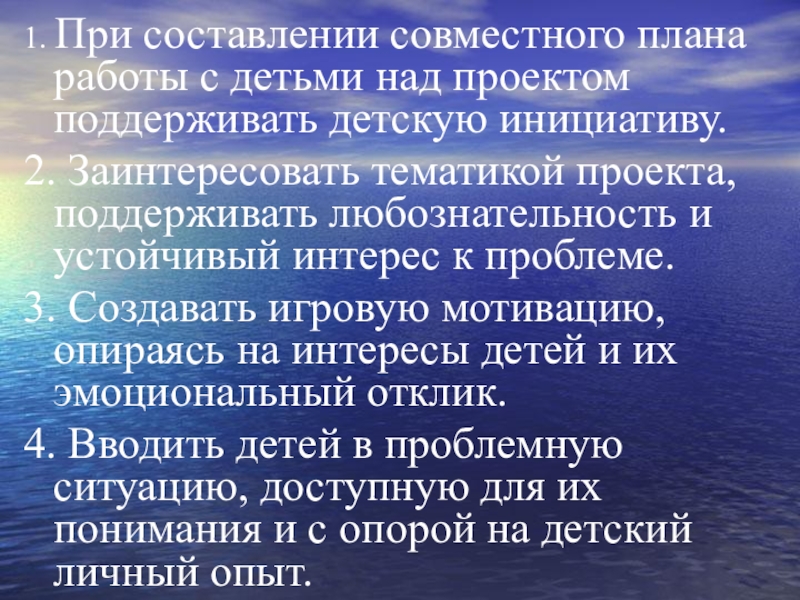 Слайд 141. При составлении совместного плана работы с детьми над проектом поддерживать