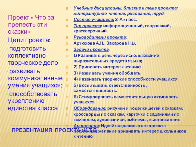 Аннотация: Идеей создания этого проекта послужило желание прививать интерес школьников к чтению.