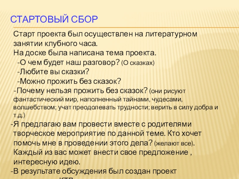 Старт проекта был осуществлен на литературном занятии клубного часа.