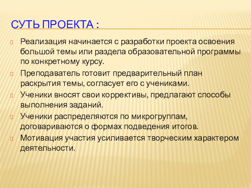 Преподаватель готовит предварительный план раскрытия темы, согласует его с учениками.