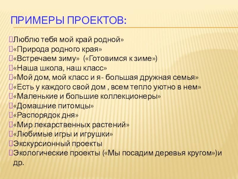 В начальной школе учитель сам не навязчиво предлагает тему проекта. Он предлагает (пока) то, что интересует его. Но так, чтобы заинтересовать учеников.