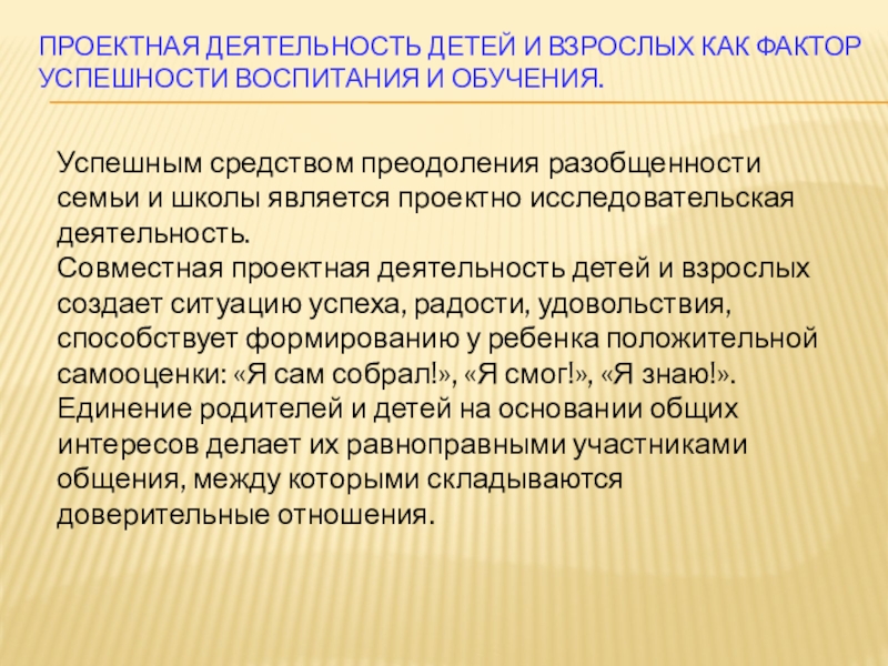 Слайд 13Проектная деятельность детей и взрослых как фактор успешности воспитания и обучения.