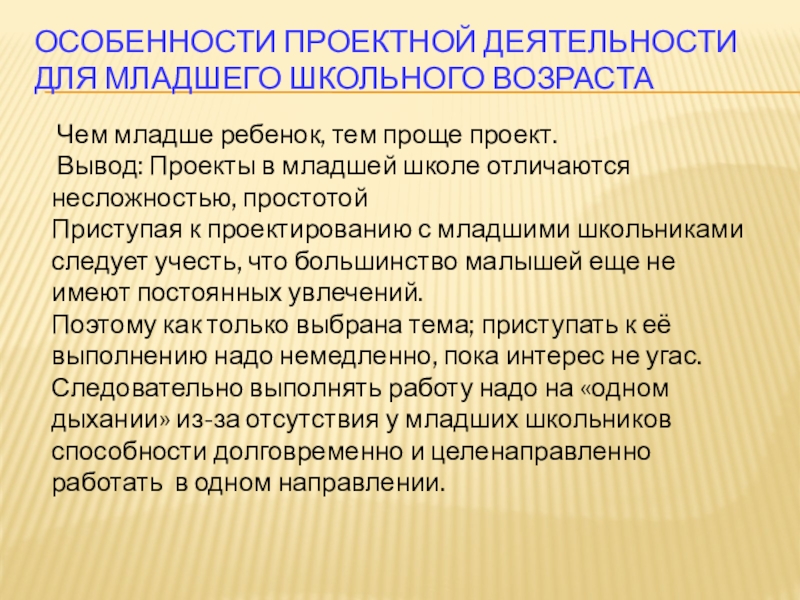 Слайд 12Особенности проектной деятельности для младшего школьного возраста