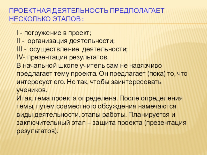 Слайд 9Проектная деятельность предполагает несколько этапов :