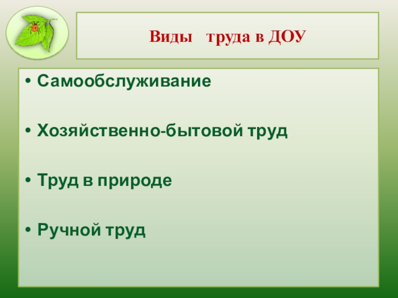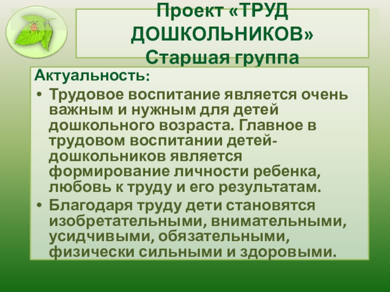 Формирование представлений дошкольников о видах детского труда; о труде взрослых, его роли в обществе и жизни каждого человека.