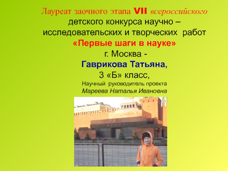 Слайд 45Лауреат заочного этапа VII всероссийского детского конкурса научно – исследовательских и