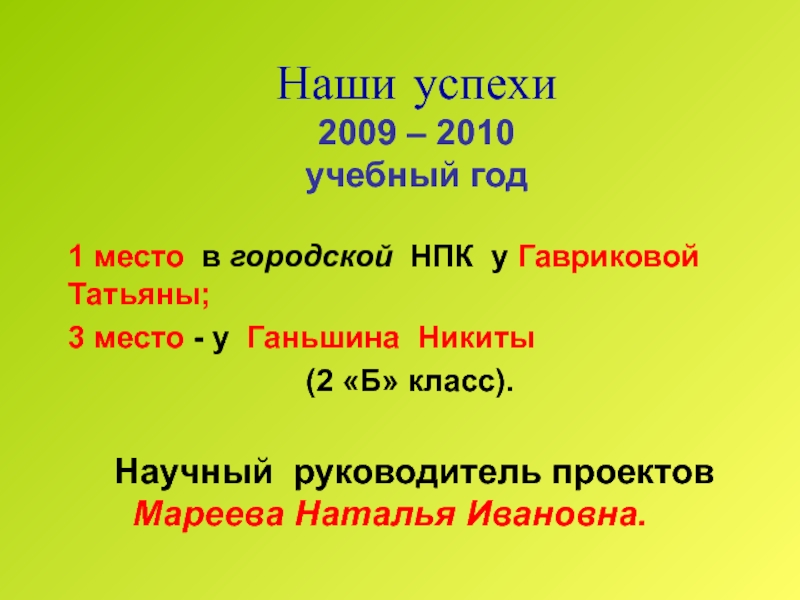Научный руководитель проектов Мареева Наталья Ивановна.