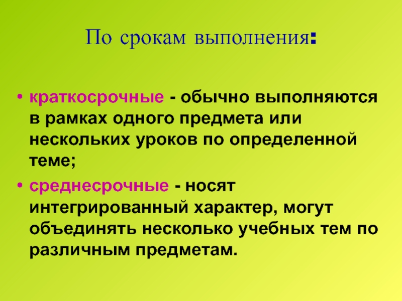 краткосрочные - обычно выполняются в рамках одного предмета или