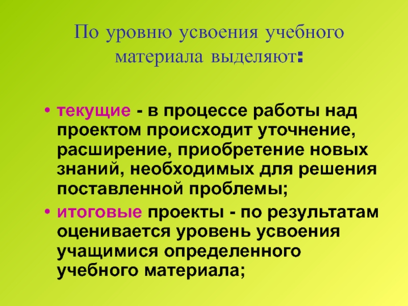 Слайд 9По уровню усвоения учебного материала выделяют: