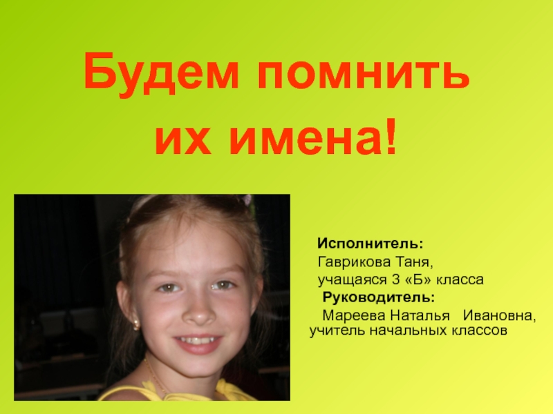 «Моя семья в военной истории Отечества» у Гавриковой Татьяны.