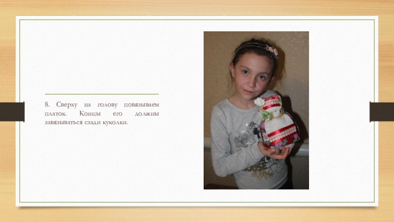 8. Сверху на голову повязываем платок. Концы его должны завязываться сзади куколки.