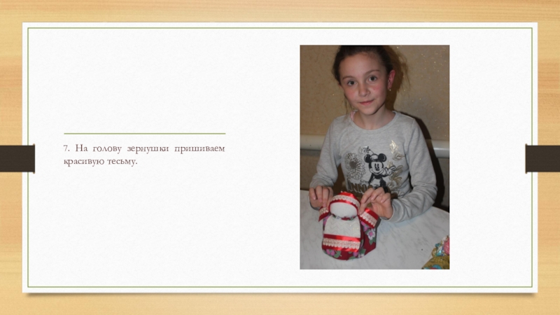 Слайд 127. На голову зернушки пришиваем красивую тесьму.