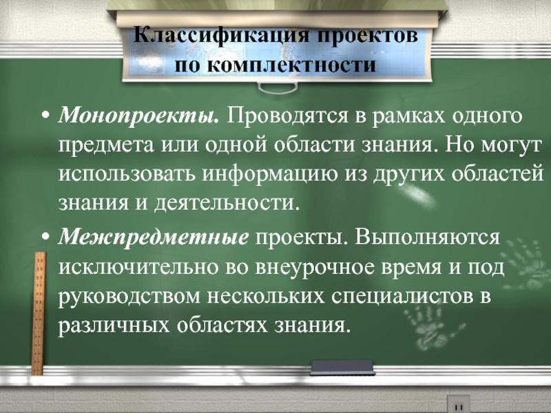 Монопроекты. Проводятся в рамках одного предмета или одной