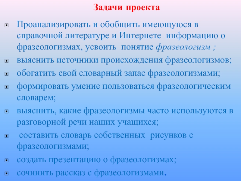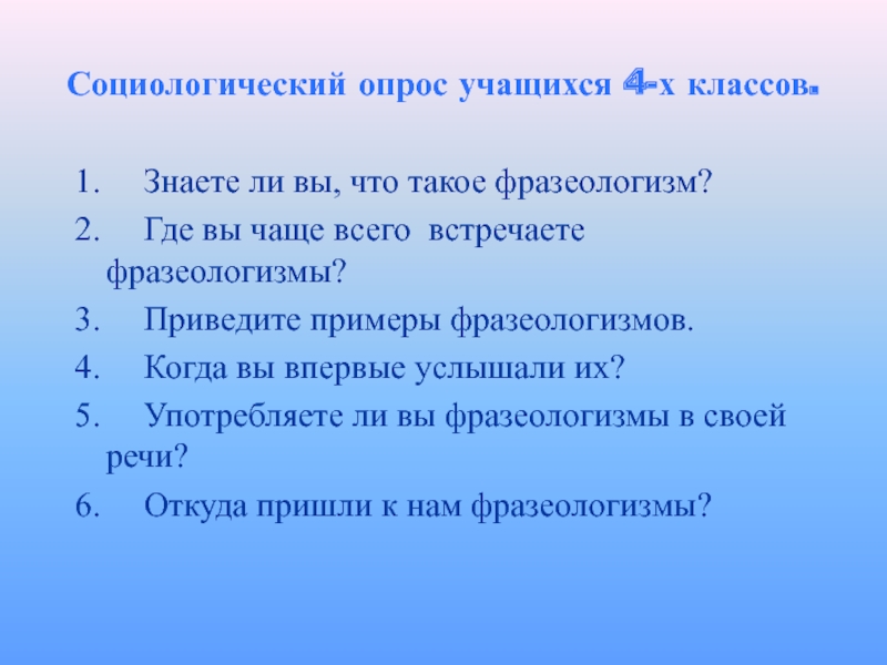 выяснить, какие фразеологизмы часто используются в разговорной речи наших учащихся;
