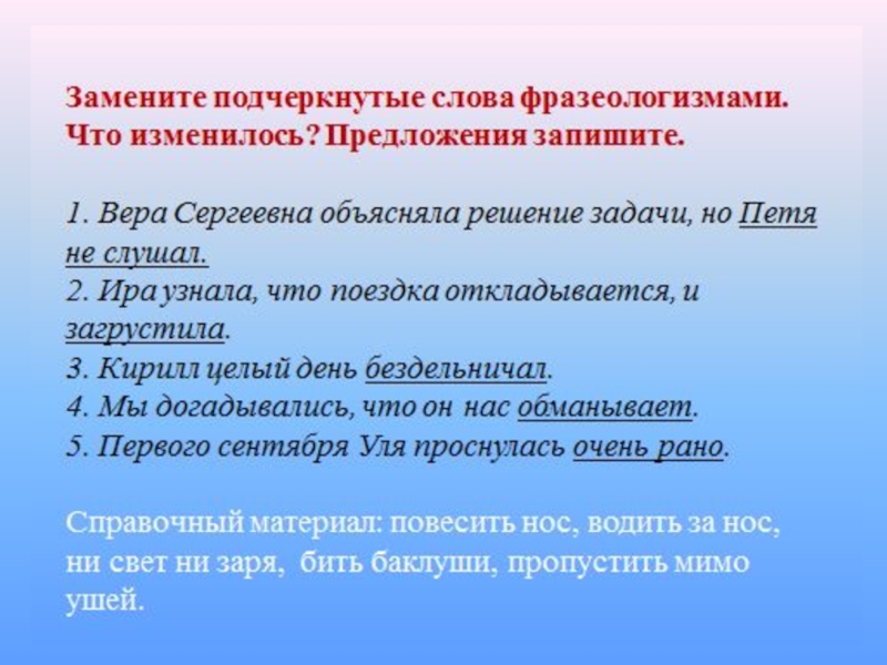 Слайд 55Учащиеся усвоили значение понятия «фразеологизм».