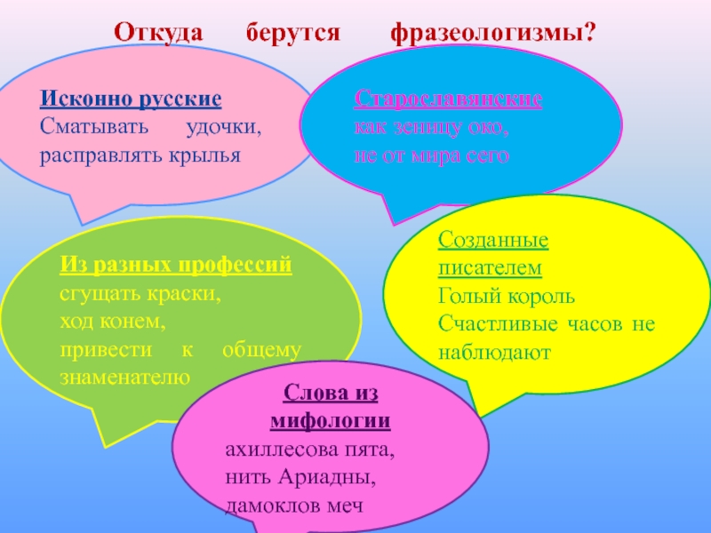 о фразеологизмах, усвоить понятие фразеологизм ;