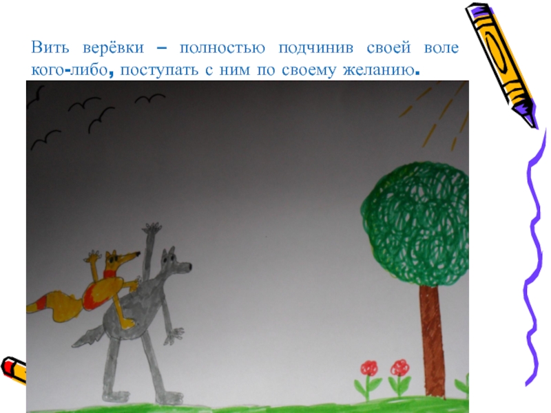 Слайд 27Вить верёвки – полностью подчинив своей воле кого-либо, поступать с ним