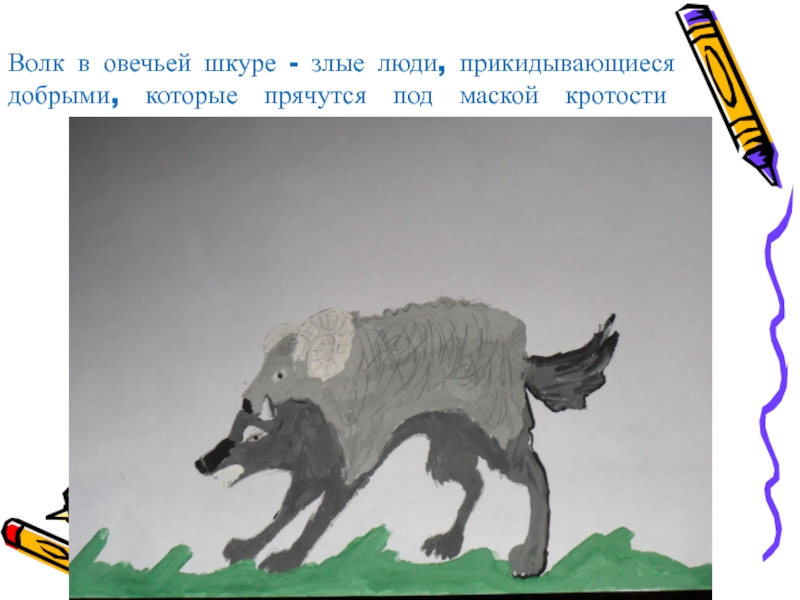 Волк в овечьей шкуре - злые люди, прикидывающиеся добрыми, которые прячутся
