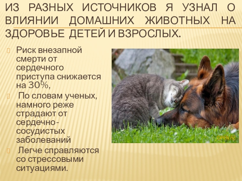 Слайд 16Из разных источников я узнал о влиянии домашних животных на здоровье