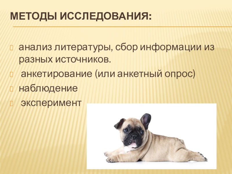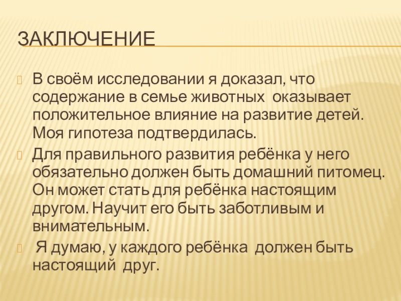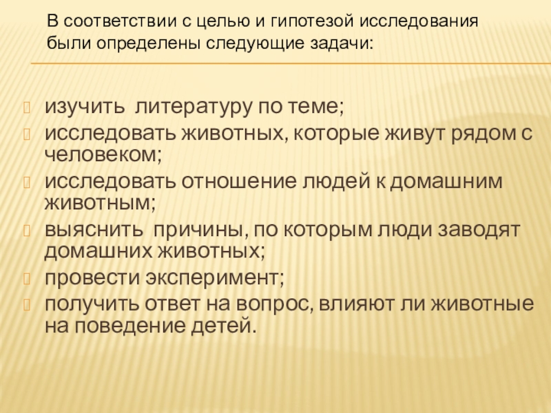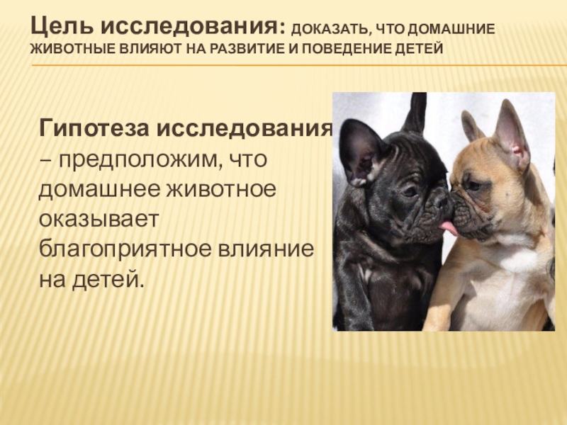 Слайд 3Гипотеза исследования – предположим, что домашнее животное оказывает благоприятное влияние на детей.