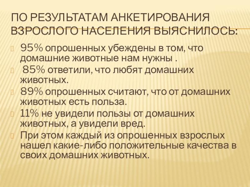 При этом каждый из опрошенных взрослых нашел какие-либо положительные качества в своих домашних животных.