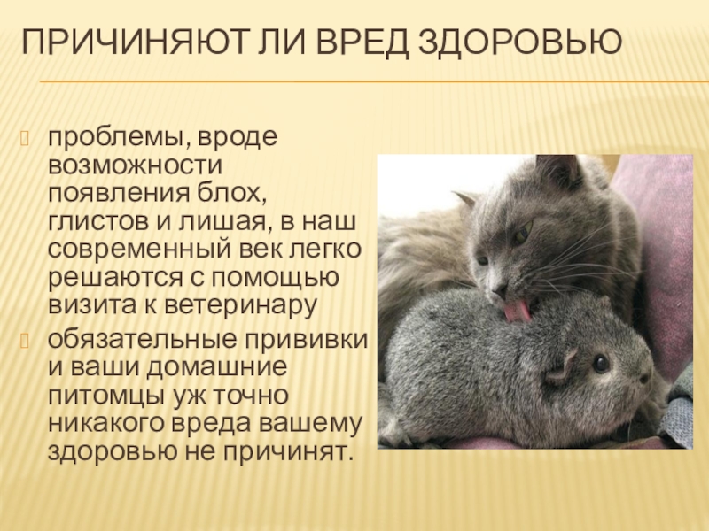 обязательные прививки и ваши домашние питомцы уж точно никакого вреда вашему здоровью не причинят.