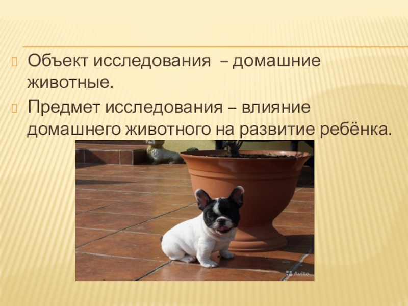 Предмет исследования – влияние домашнего животного на развитие ребёнка.