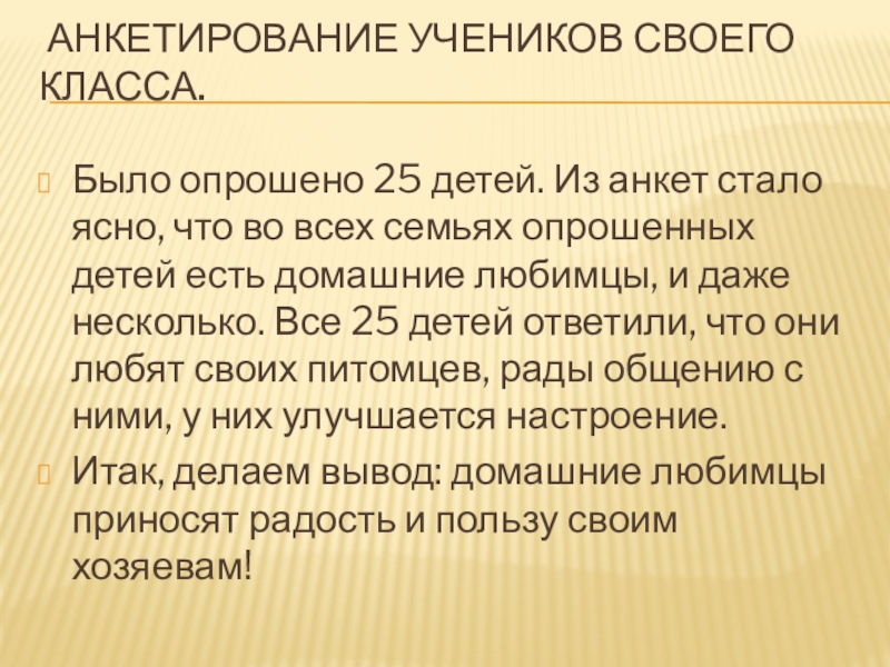 Итак, делаем вывод: домашние любимцы приносят радость и пользу своим хозяевам!