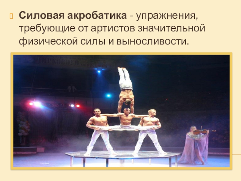 Слайд 16Силовая акробатика - упражнения, требующие от артистов значительной физической силы и