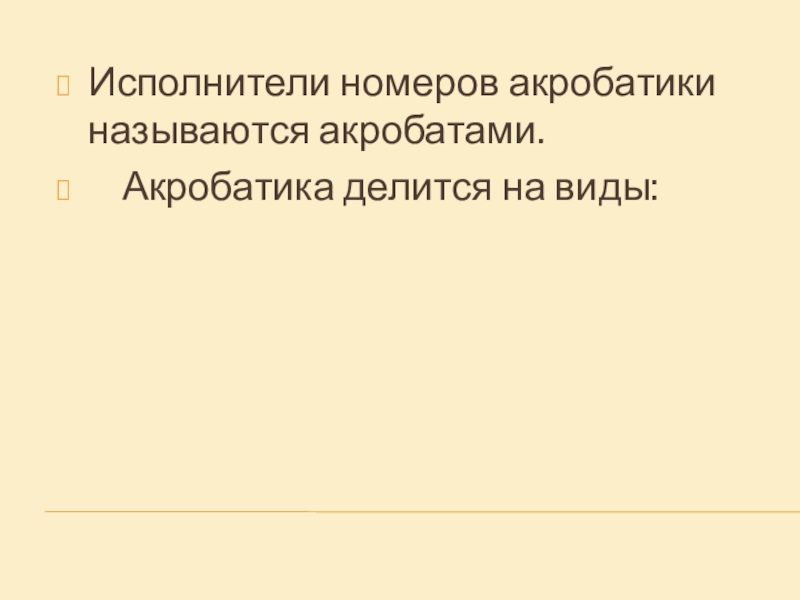 Слайд 13Исполнители номеров акробатики называются акробатами.