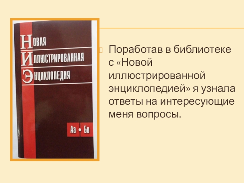 Слайд 8Поработав в библиотеке с «Новой иллюстрированной энциклопедией» я узнала ответы на