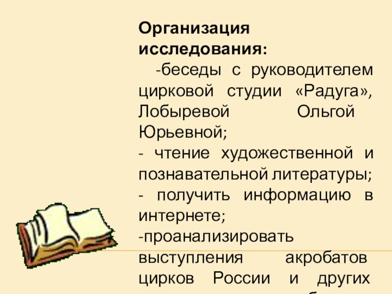 -проанализировать выступления акробатов цирков России и других стран, в которых я побывала.