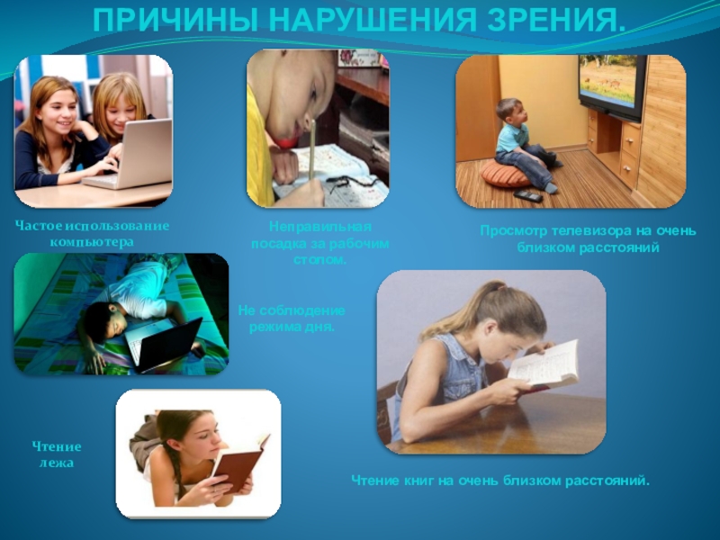 Чтение книг на очень близком расстояний.