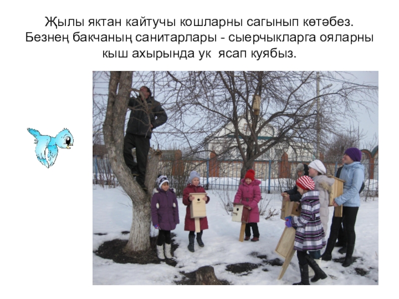 5) Җылы яктан кайтучы кошларга оялар ясап куярга!