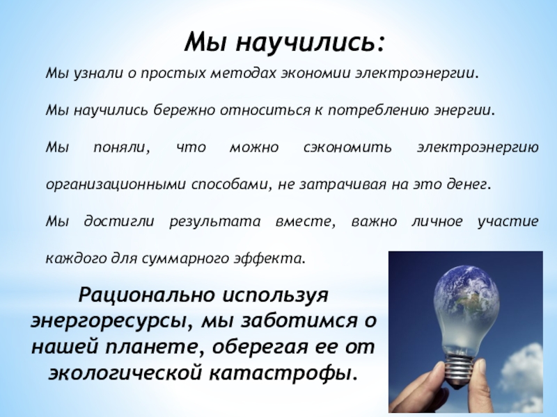 5. Сравнив потребление электроэнергии с предыдущими месяцами, оценили полученную экономию.