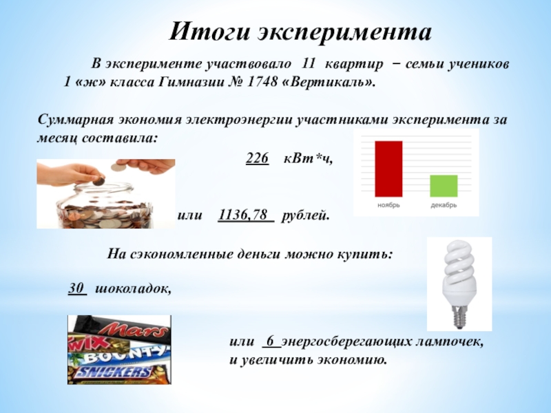 Суммарная экономия электроэнергии участниками эксперимента за месяц составила: