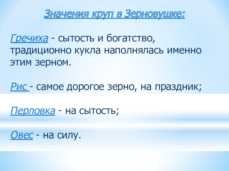 Гречиха - сытость и богатство, традиционно кукла наполнялась