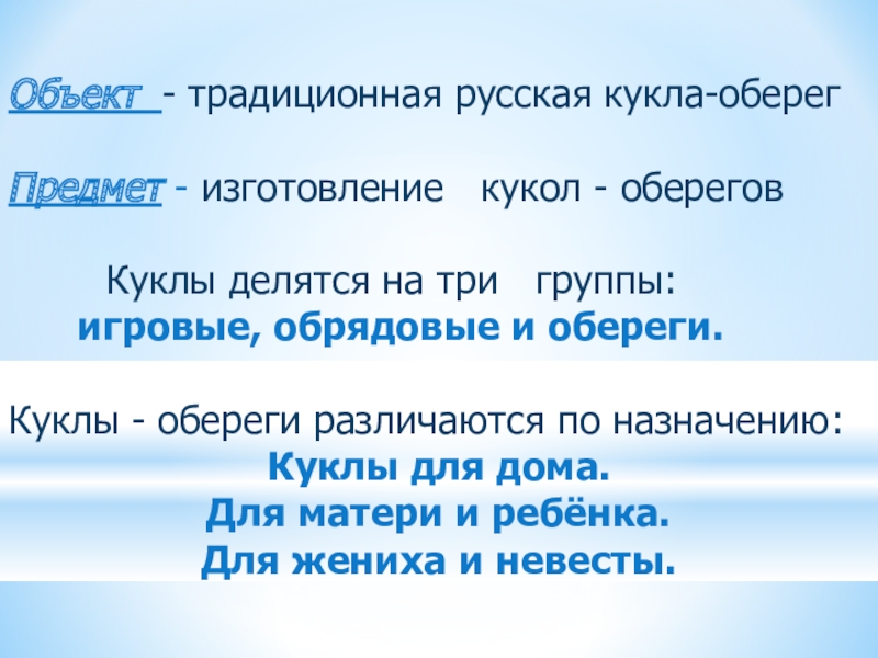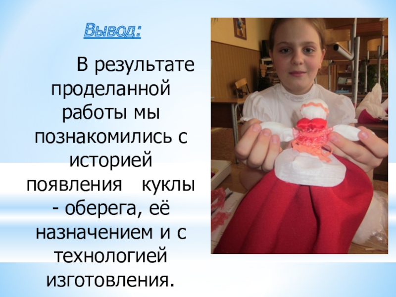 с историей появления куклы - оберега, её назначением и с технологией изготовления.