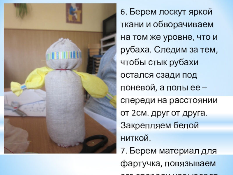 Слайд 166. Берем лоскут яркой ткани и обворачиваем на том же уровне,