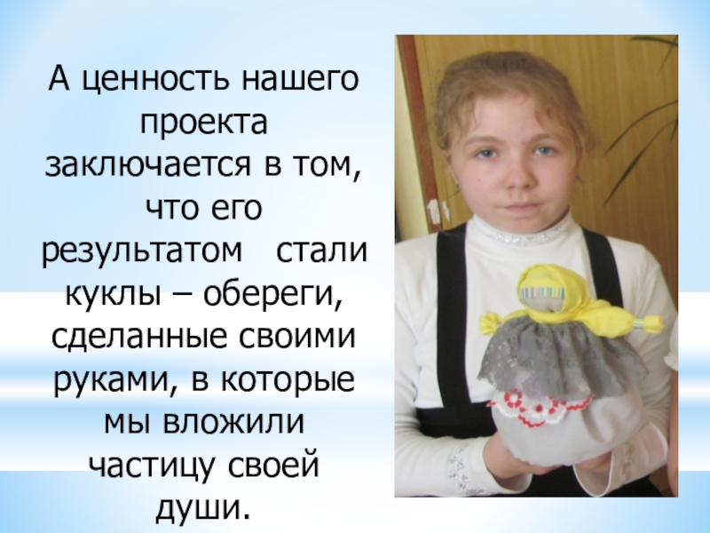 стали куклы – обереги, сделанные своими руками, в которые мы вложили частицу своей души.