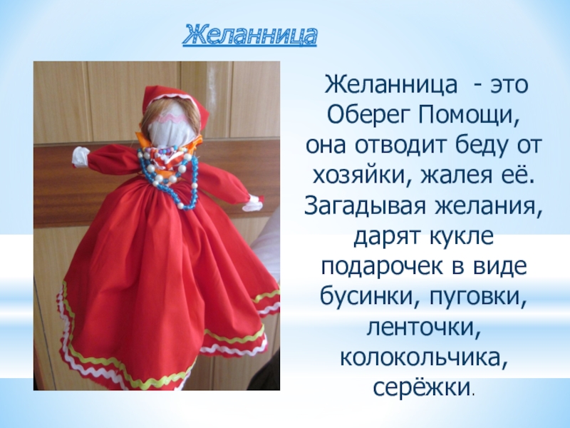Желанница - это Оберег Помощи, она отводит беду от хозяйки,