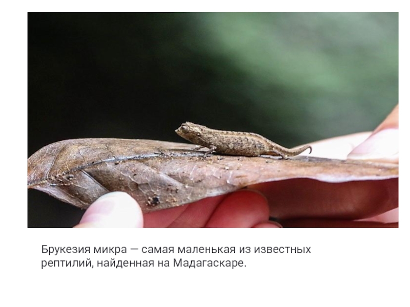 Слайд 12Брукезия микра — самая маленькая из известных рептилий, найденная на Мадагаскаре.
