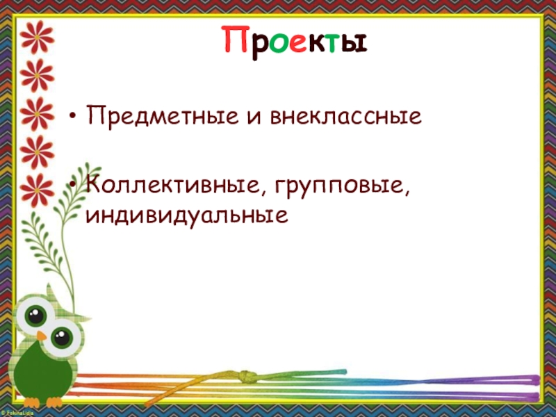 ПроектыПредметные и внеклассныеКоллективные, групповые, индивидуальные