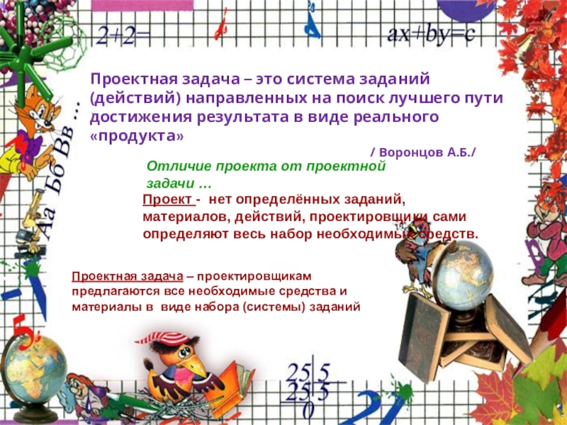 Проектная задача – это система заданий (действий) направленных на поиск лучшего пути достижения результата в виде реального «продукта»