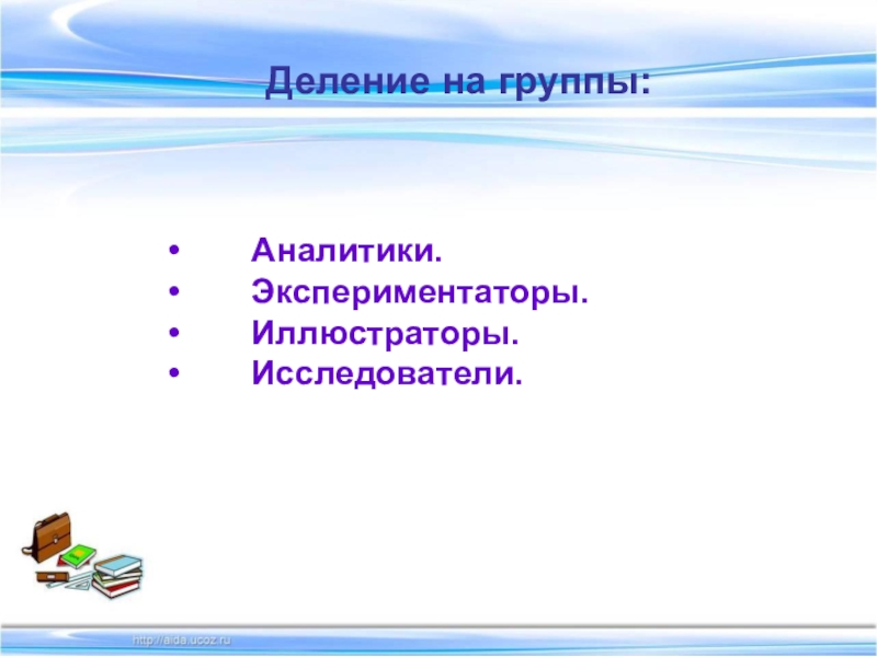 Это сайт презентаций, где можно хранить и обмениваться своими презентациями, докладами, проектами, шаблонами в формате PowerPoint с другими пользователями. Мы помогаем школьникам, студентам, учителям, преподавателям хранить и обмениваться учебными материалами.