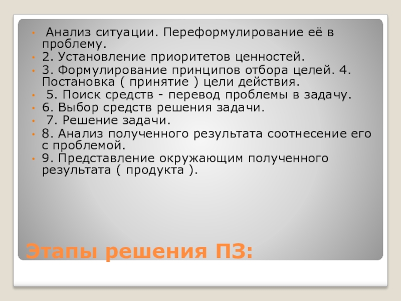 3. Формулирование принципов отбора целей. 4. Постановка ( принятие ) цели действия.