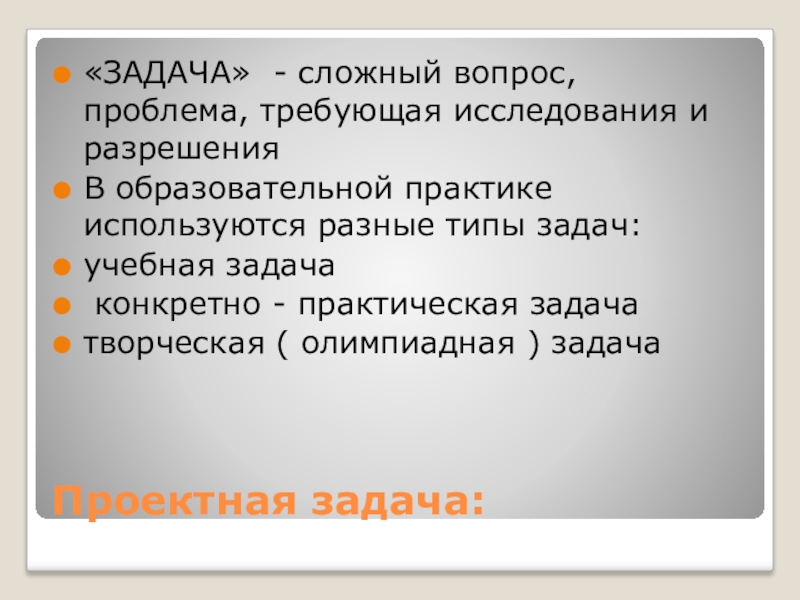 «ЗАДАЧА» - сложный вопрос, проблема, требующая исследования и разрешения