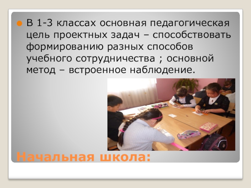 В 1-3 классах основная педагогическая цель проектных задач – способствовать