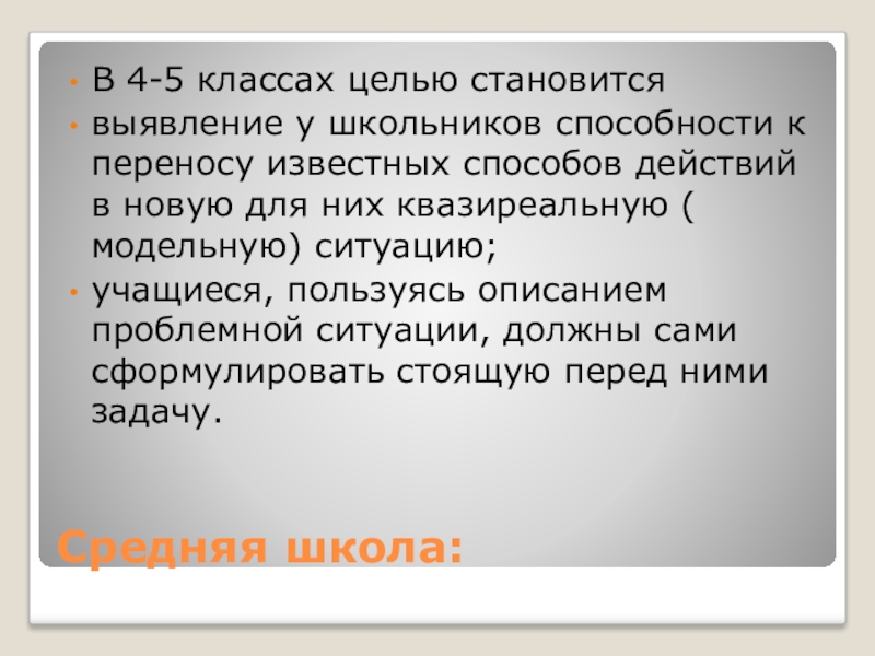 Возможность « переноса » известных способов действия в модельную ситуацию.